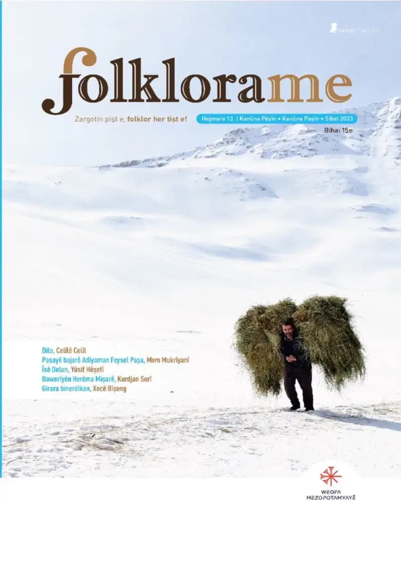 | Pîvan | Folklora Me 13 Di hejmara me ya vê carê da 22 nivîsên curbicur hene. Ji van nivîsan, çar bi zaravayên kirmanckî , heçî yên mayî bi kurmancî ne . Ji nivîsên kirmanckî, yek heye stranek e (deyîr) ku berîya 30 salî hatîye qeydkirin. Dîsa, berh |